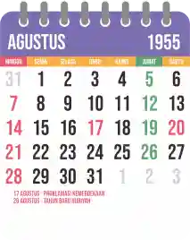 Template kalender 1955 yang bertemakan lucu dan moderen. Bentuknya simple tanpa tanggal hijriah dan tanggal jawa. Cocok buat kebutuhan kalender yang sifatnya universal.