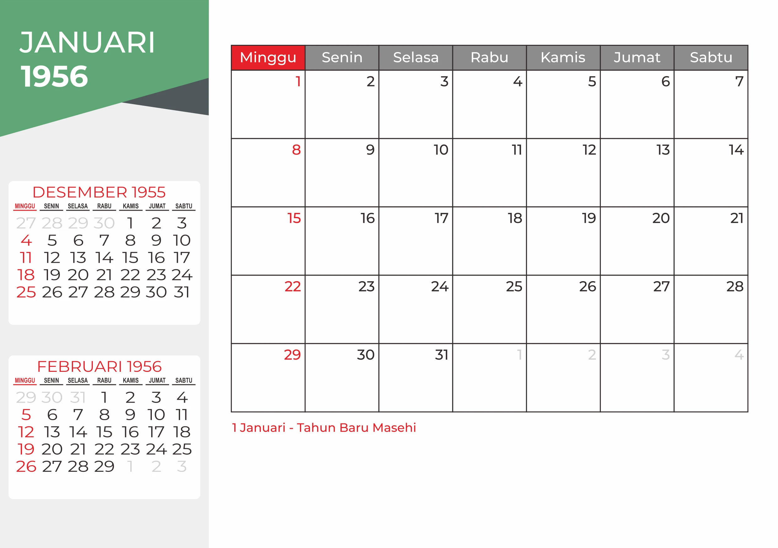 Dapatkan akses vector template kalender 1956 dengan berbagai tema, file editable, warna CMYK / RGB untuk CorelDRAW.