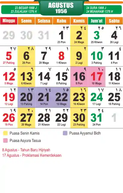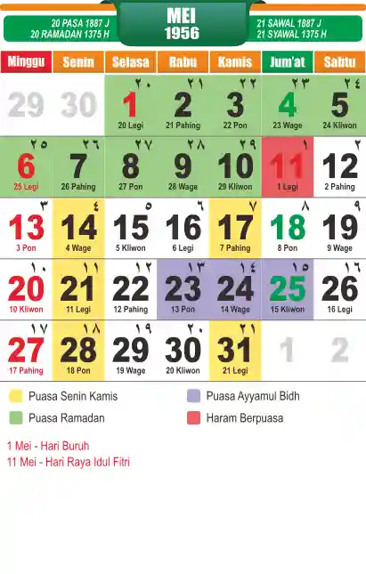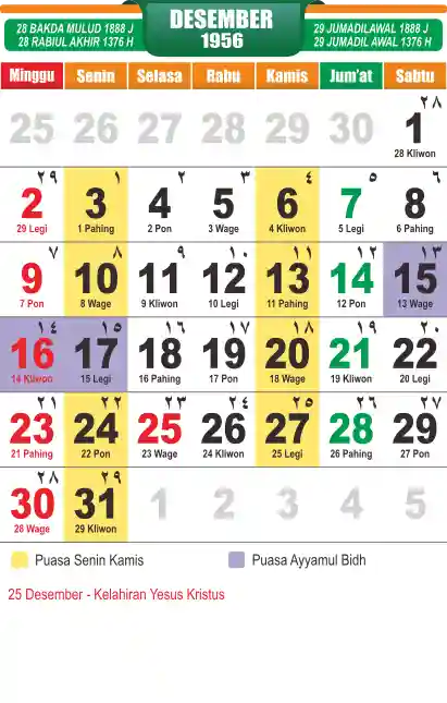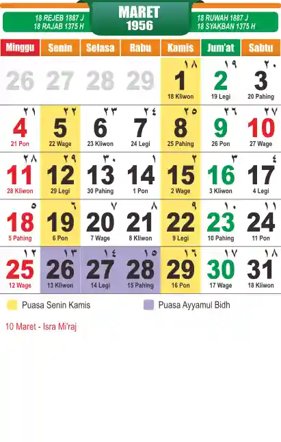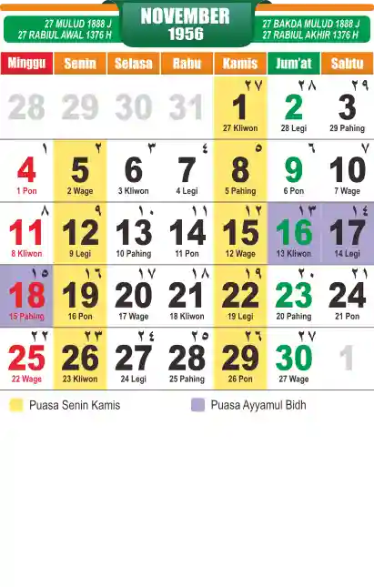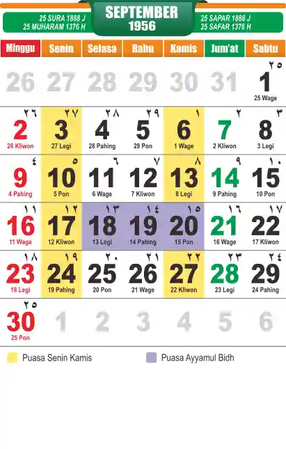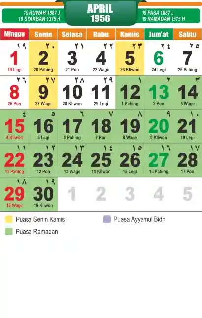 Template kalender puasa 1956, cocok sekali buat anda yang ingin cetak kalender yang bermanfat buat umat.