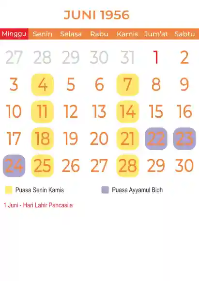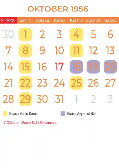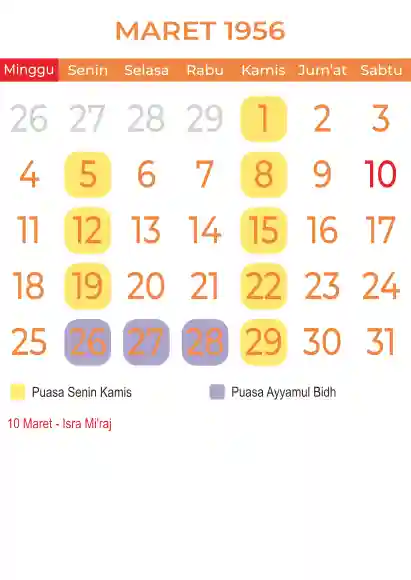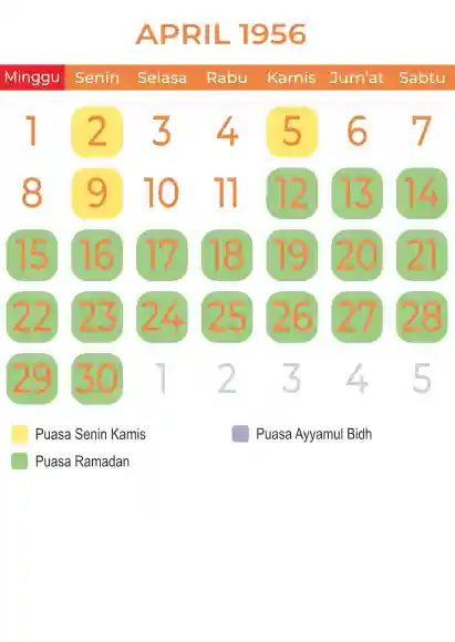 Template kalender puasa 1956, Versi yang lebih simple, cocok sekali buat anda yang ingin cetak kalender yang bermanfat buat umat.