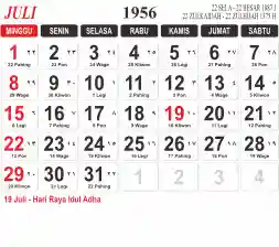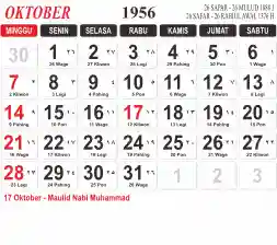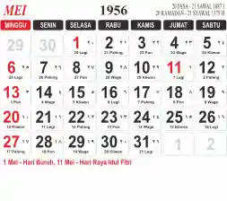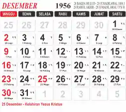 List hari libur tahun 1956 pada Tema 3 (Wide)