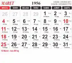 Tema kalender 1956 yang cocok buat desain kalender yang lebih lebar, cocok buat kalender kantor atau desain yang lebih minimalis.