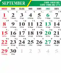 Tema kalender 1957 yang nuansa Islami yang cocok buat pondok pesantren atau lembaga keagamaan. Menggunakan font standar Times New Roman yang mudah dibaca.