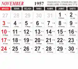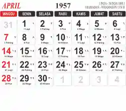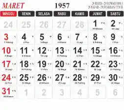 Tema kalender 1957 yang cocok buat desain kalender yang lebih lebar, cocok buat kalender kantor atau desain yang lebih minimalis.