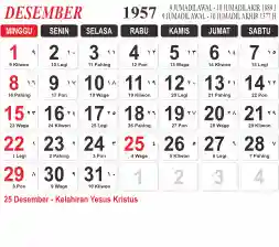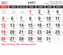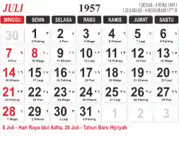List hari libur tahun 1957 pada Tema 3 (Wide)