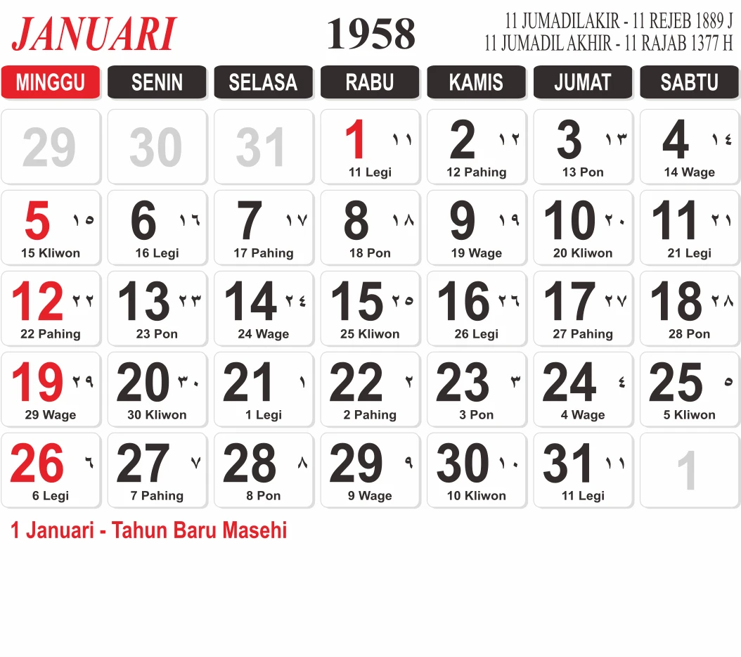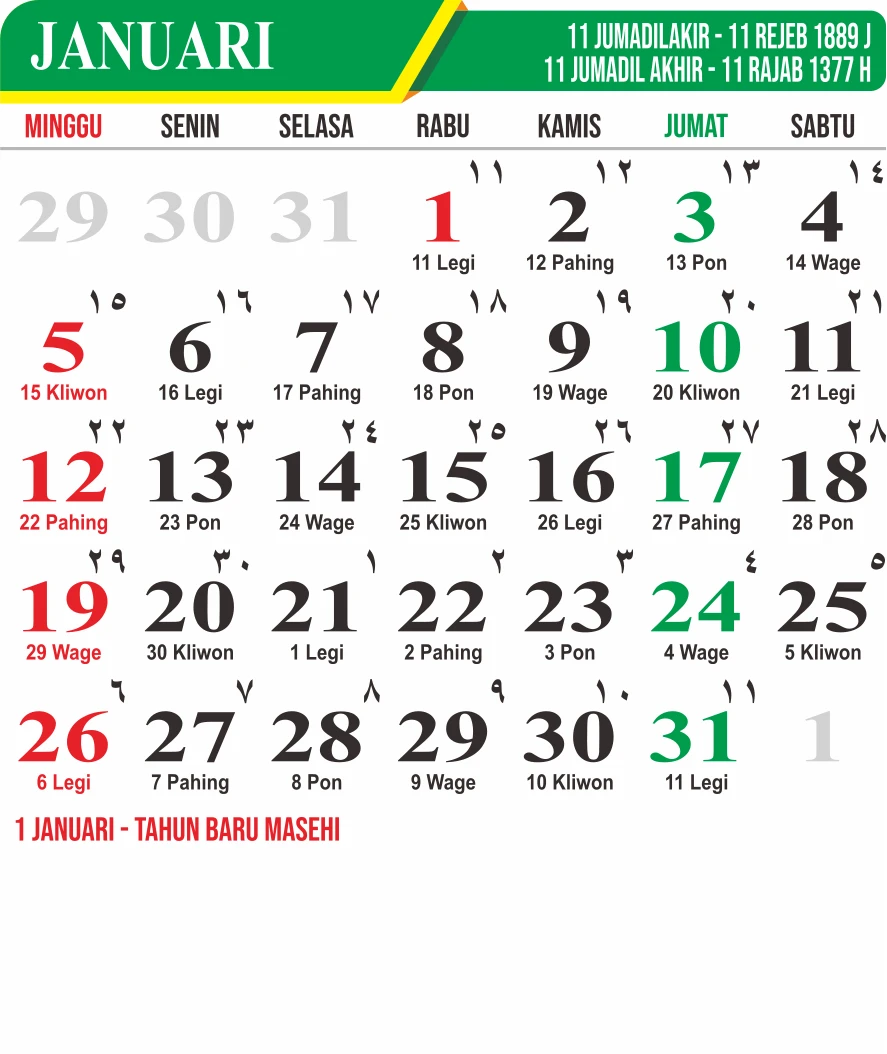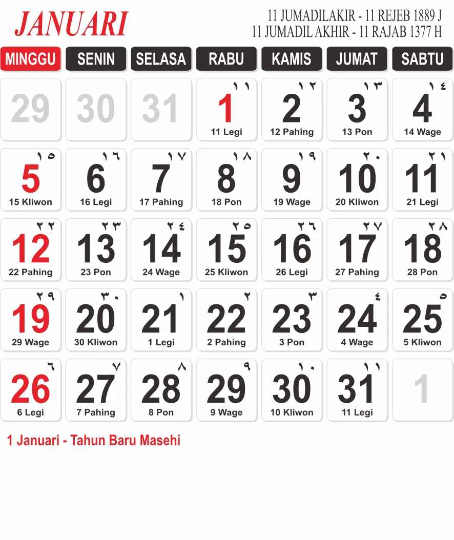 Template Kalender Jawa + Hijriah Vector
