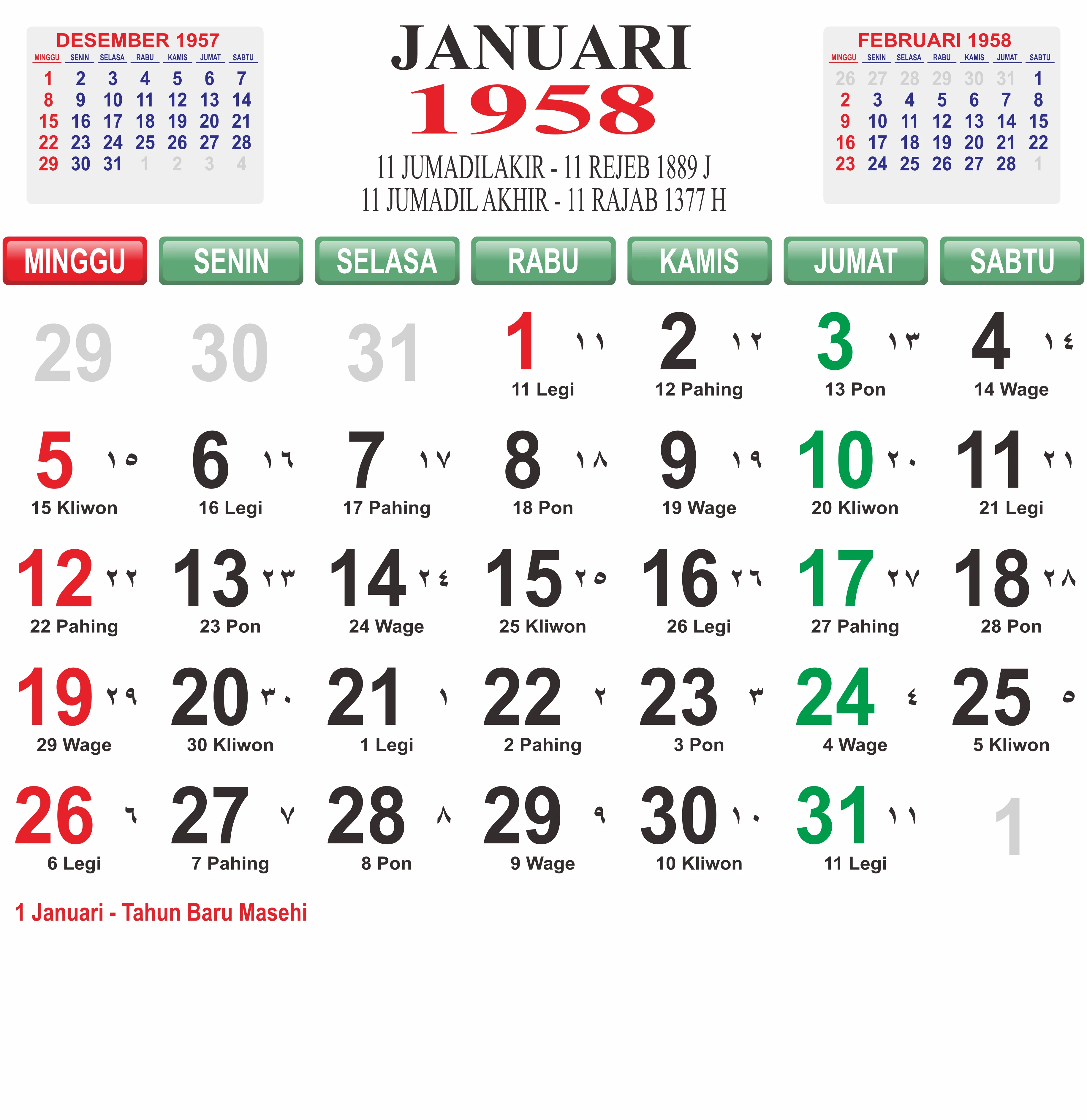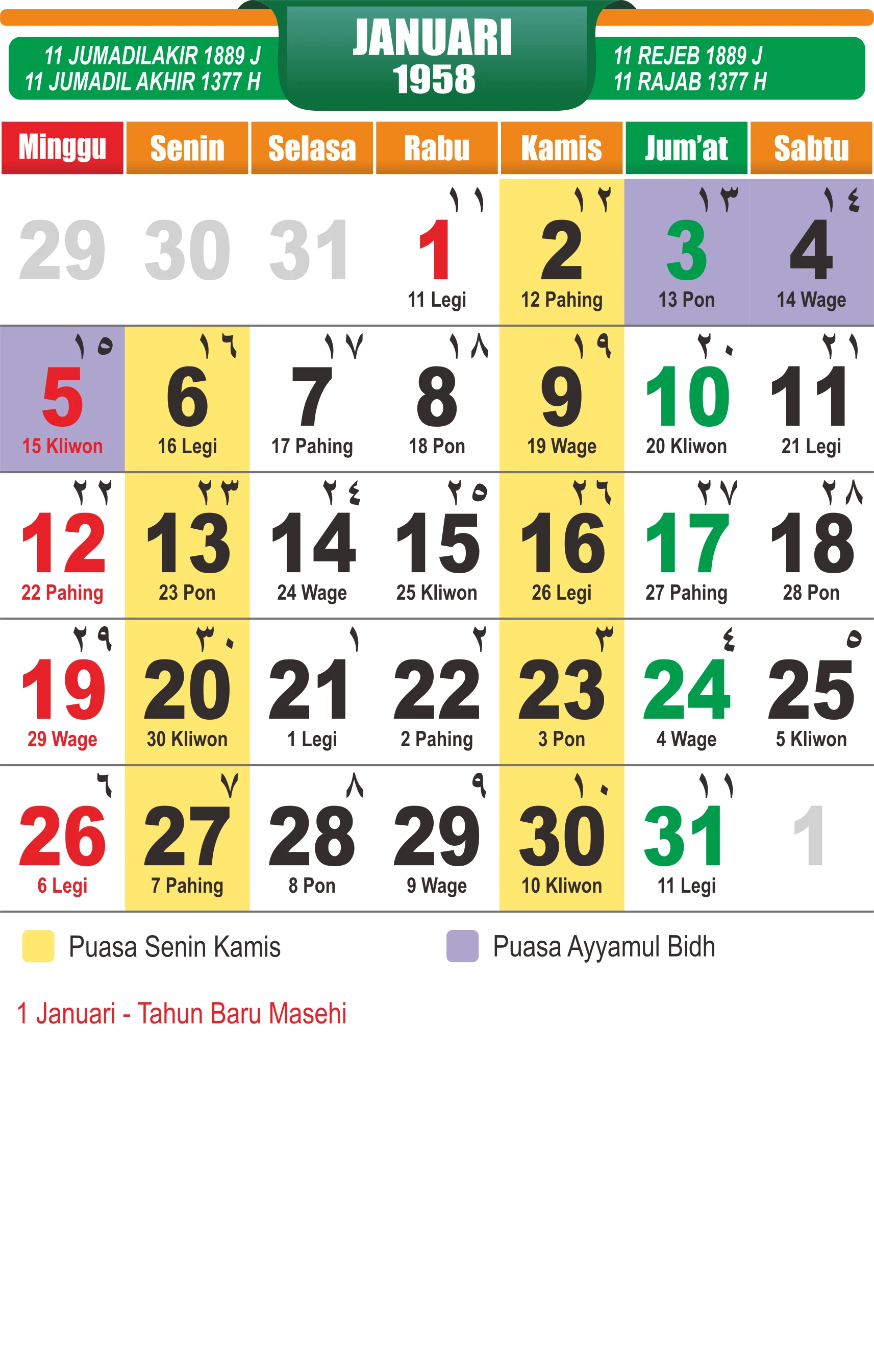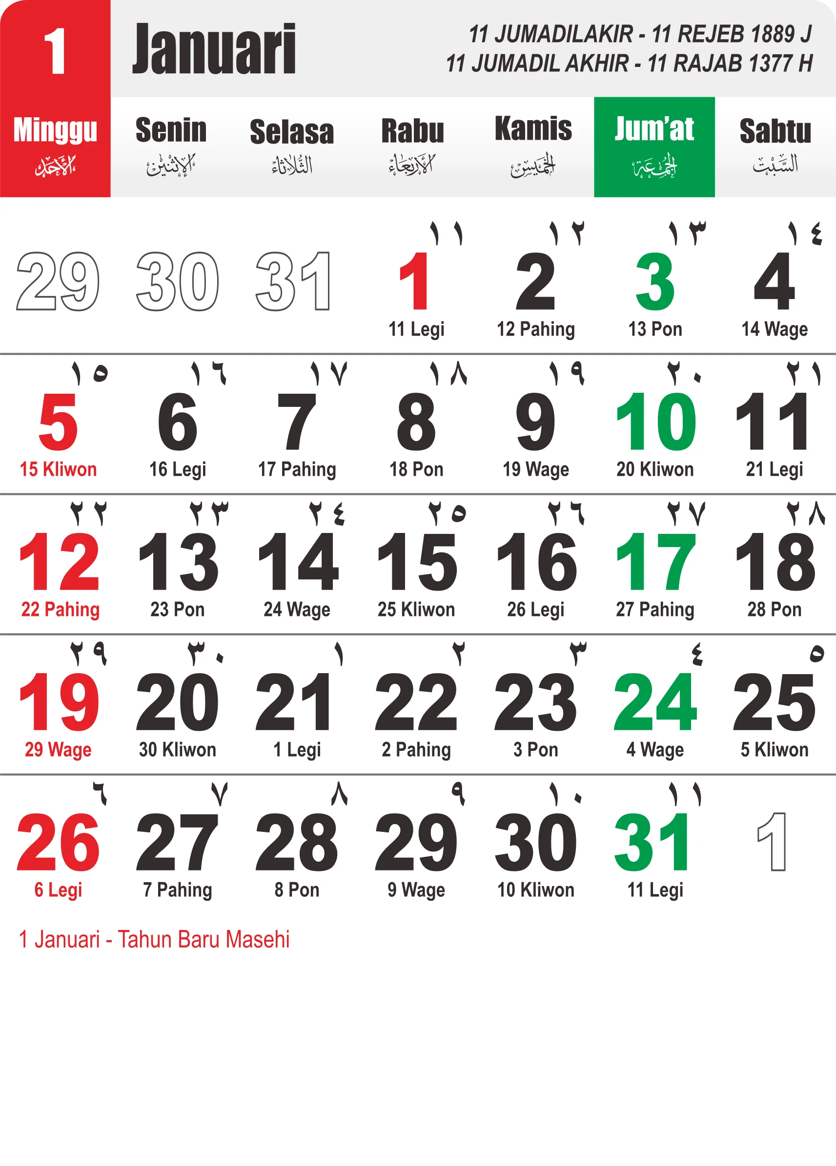 Template Kalender Jawa + Hijriah Vector