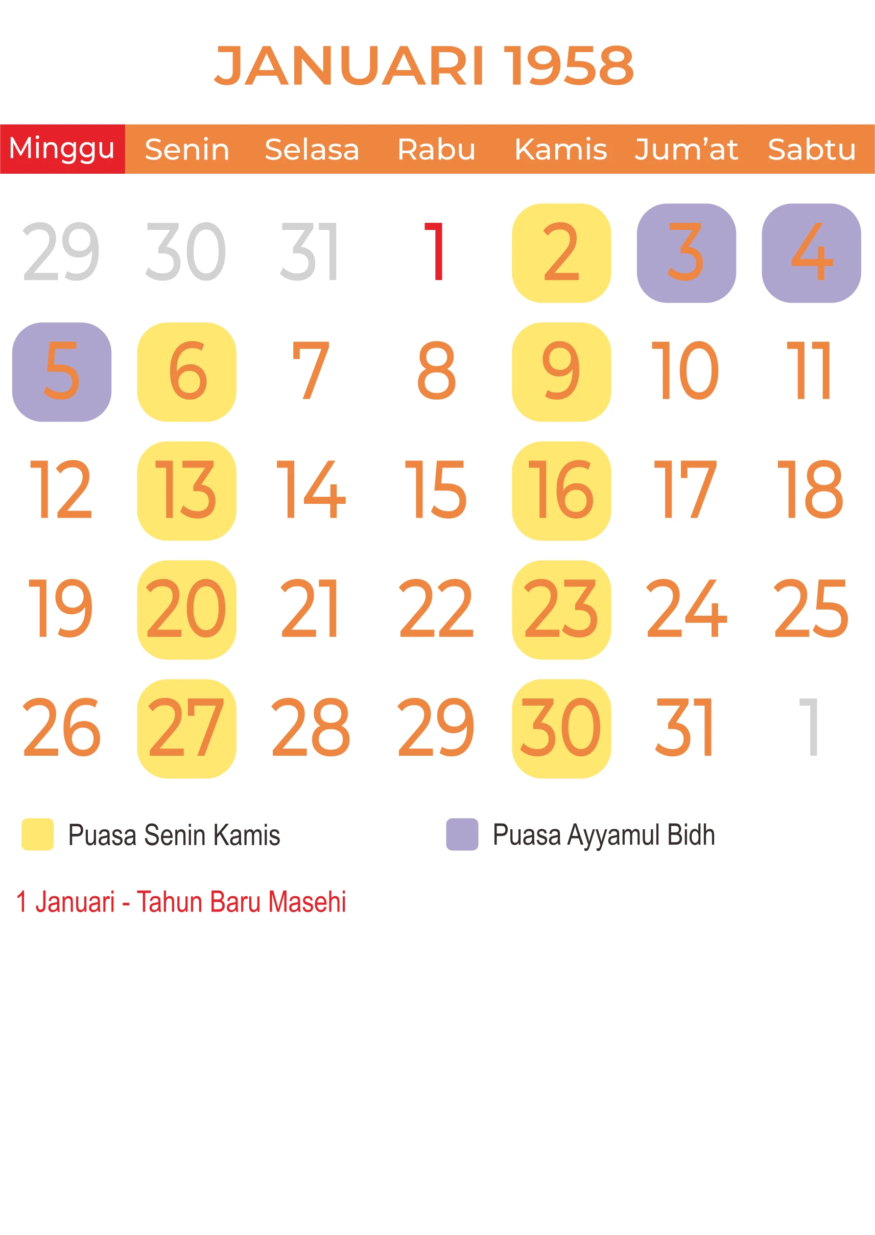 Template Kalender Puasa Vector
