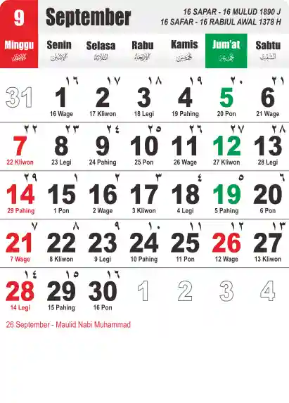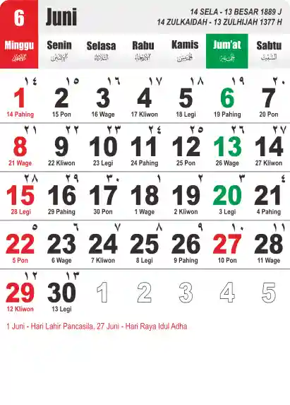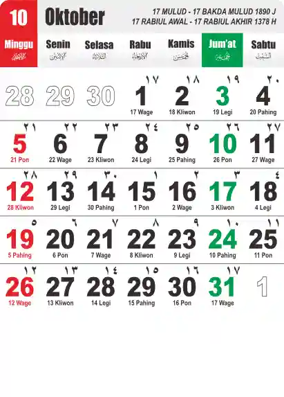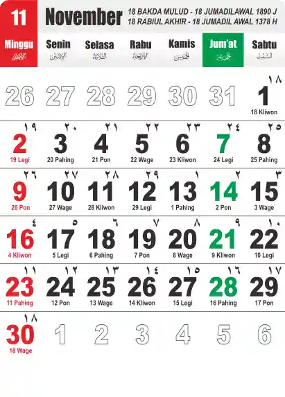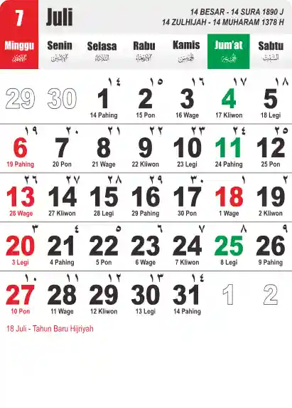 Template Kalender Jawa + Hijriah Vector
