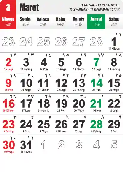Tema kalender 1958 yang universal cocok untuk desain keperluan bisnis, instansi, sekolah, universitas, lembaga, pesantren. Tema ini sangat simpel namun elegan. Tulisannya kami buat besar agar dapat mudah dibaca.