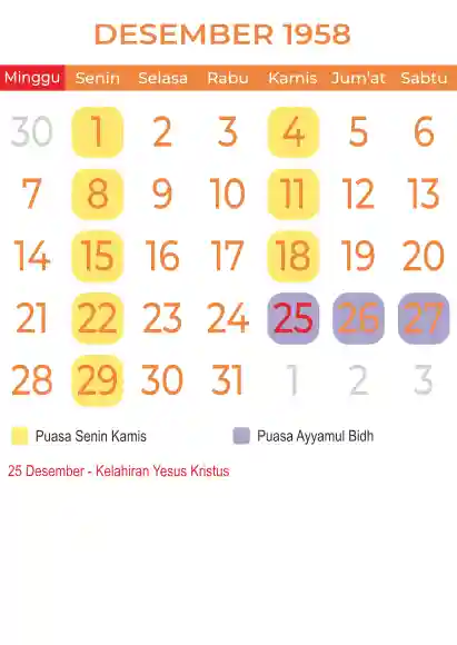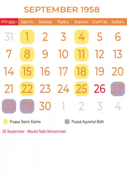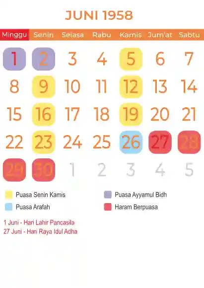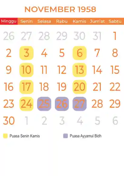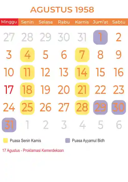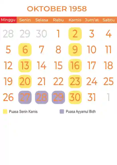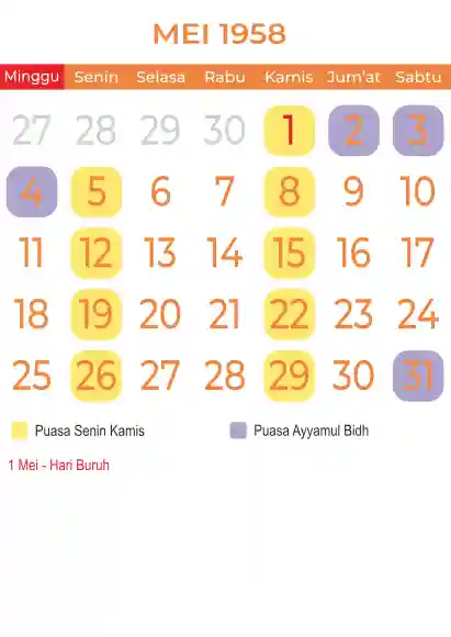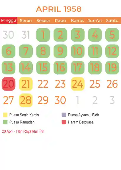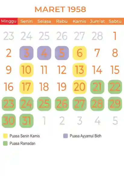 Template kalender puasa 1958, Versi yang lebih simple, cocok sekali buat anda yang ingin cetak kalender yang bermanfat buat umat.