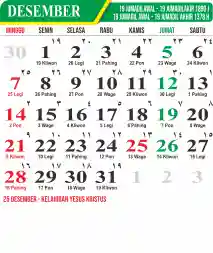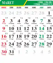 Template Kalender Jawa + Hijriah Vector