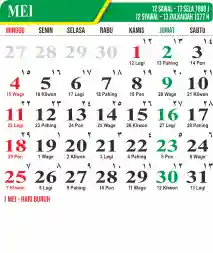 Template Kalender Masehi Vector