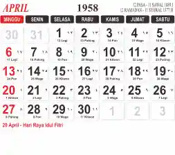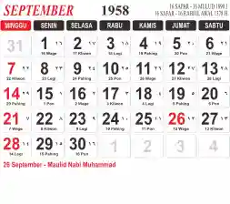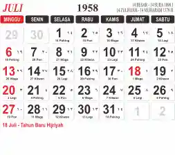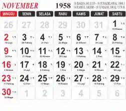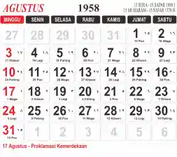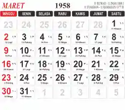 Tema kalender 1958 yang cocok buat desain kalender yang lebih lebar, cocok buat kalender kantor atau desain yang lebih minimalis.