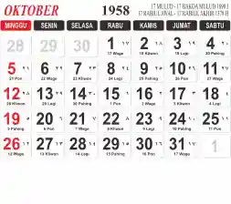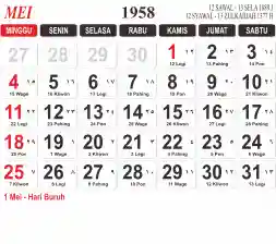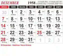 List hari libur tahun 1958 pada Tema 3 (Wide)