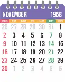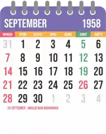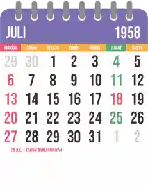 Template kalender 1958 yang bertemakan lucu dan moderen. Bentuknya simple tanpa tanggal hijriah dan tanggal jawa. Cocok buat kebutuhan kalender yang sifatnya universal.