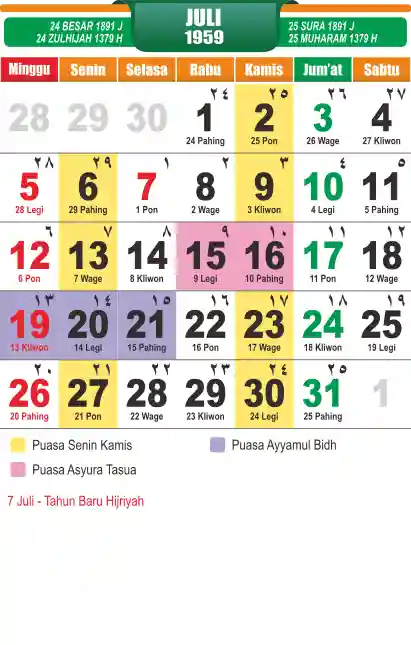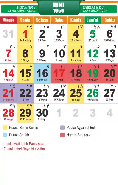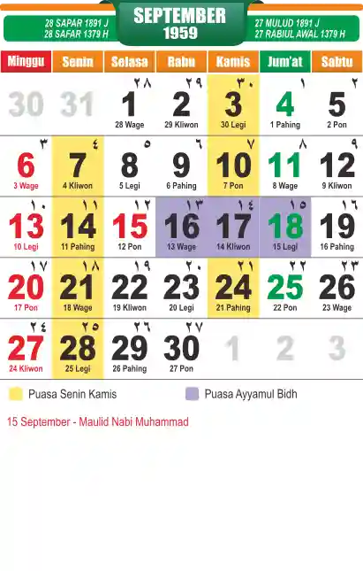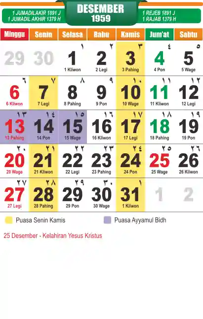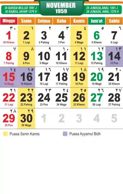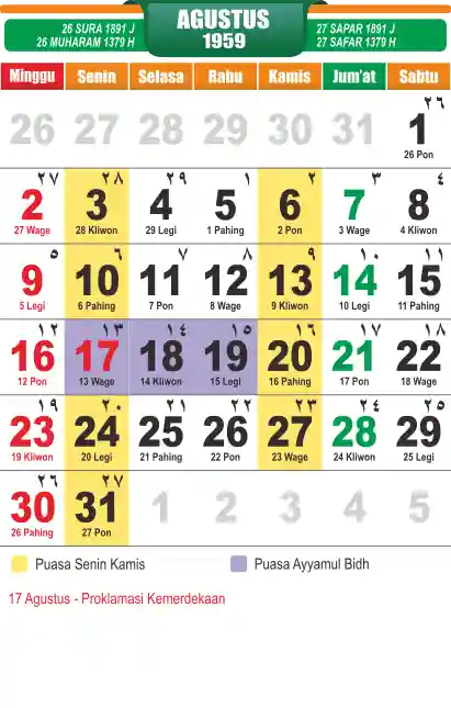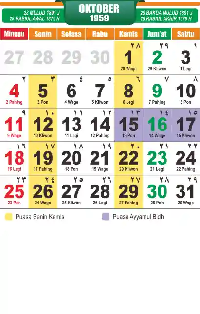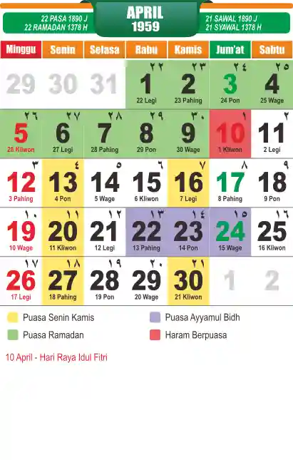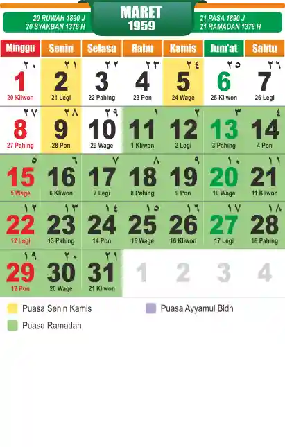 Template kalender puasa 1959, cocok sekali buat anda yang ingin cetak kalender yang bermanfat buat umat.