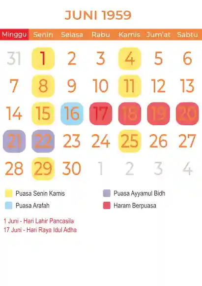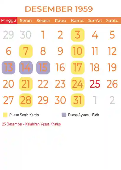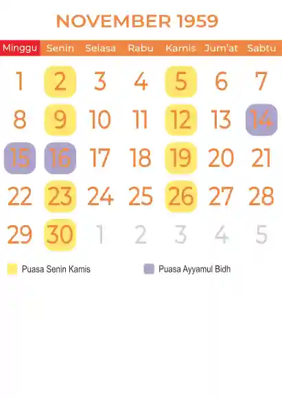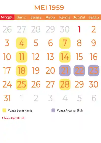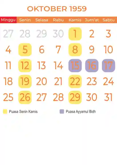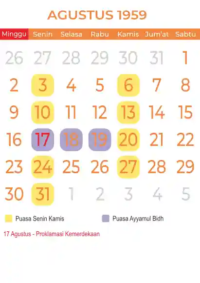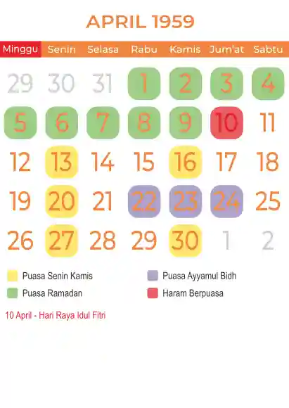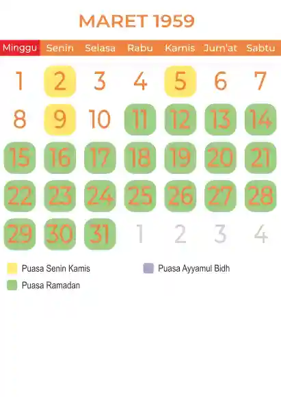 Template kalender puasa 1959, Versi yang lebih simple, cocok sekali buat anda yang ingin cetak kalender yang bermanfat buat umat.