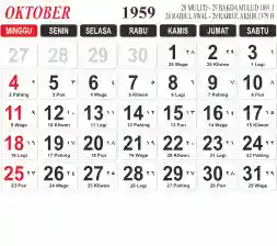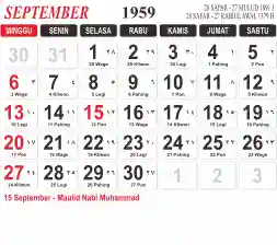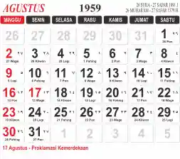 Tema kalender 1959 yang cocok buat desain kalender yang lebih lebar, cocok buat kalender kantor atau desain yang lebih minimalis.