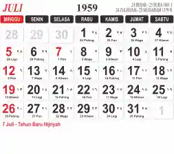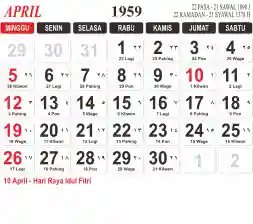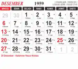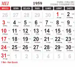 List hari libur tahun 1959 pada Tema 3 (Wide)