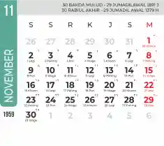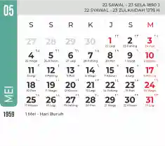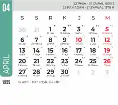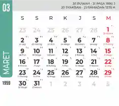 Template kalender 1959 dengan konsep minimalis modern dengan warna yang soft, cocok sekali buat kantor / bisnis seperti bank.