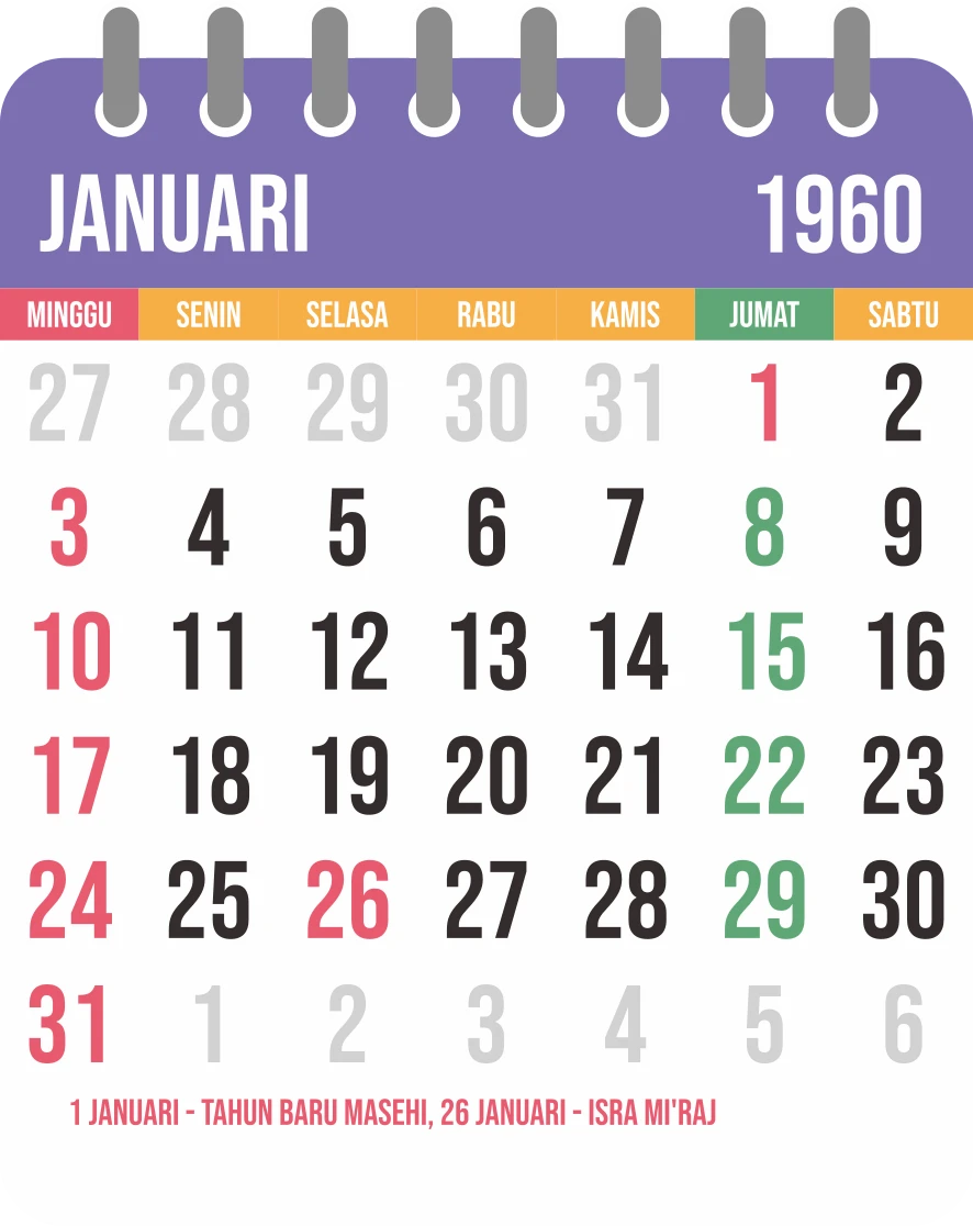 Dapatkan akses vector template kalender 1960 dengan berbagai tema, file editable, warna CMYK / RGB untuk CorelDRAW.
