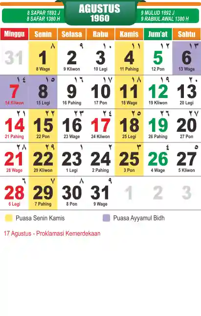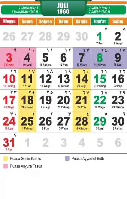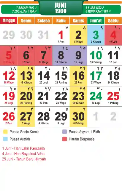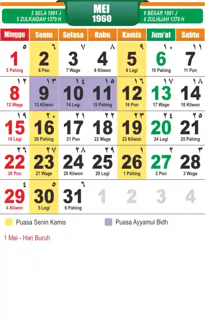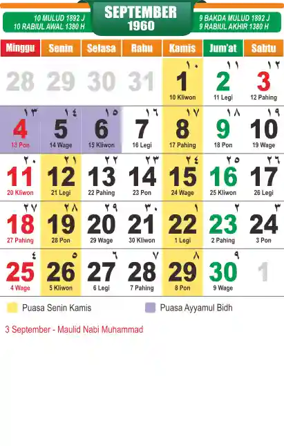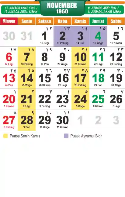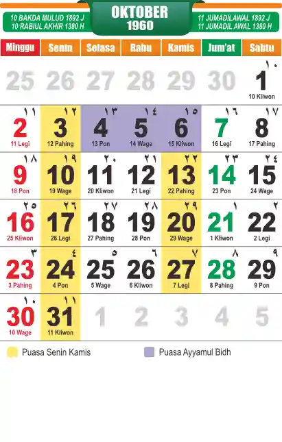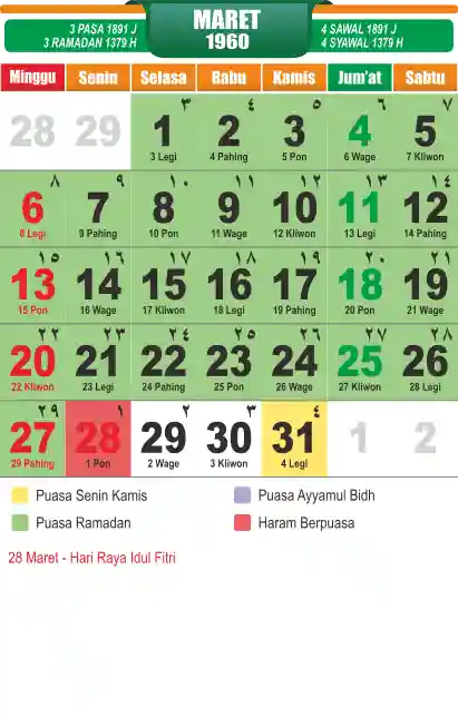 Template kalender puasa 1960, cocok sekali buat anda yang ingin cetak kalender yang bermanfat buat umat.