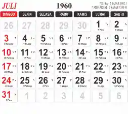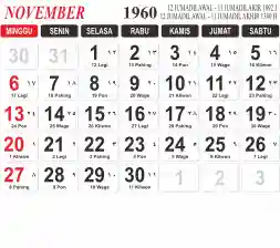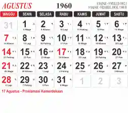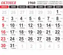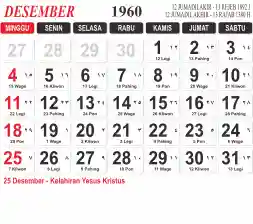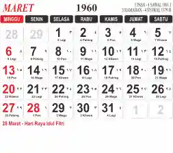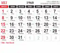 List hari libur tahun 1960 pada Tema 3 (Wide)