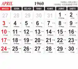 Tema kalender 1960 yang cocok buat desain kalender yang lebih lebar, cocok buat kalender kantor atau desain yang lebih minimalis.