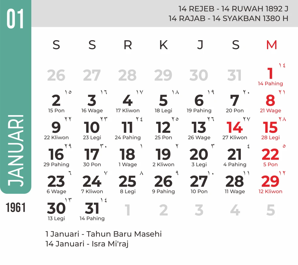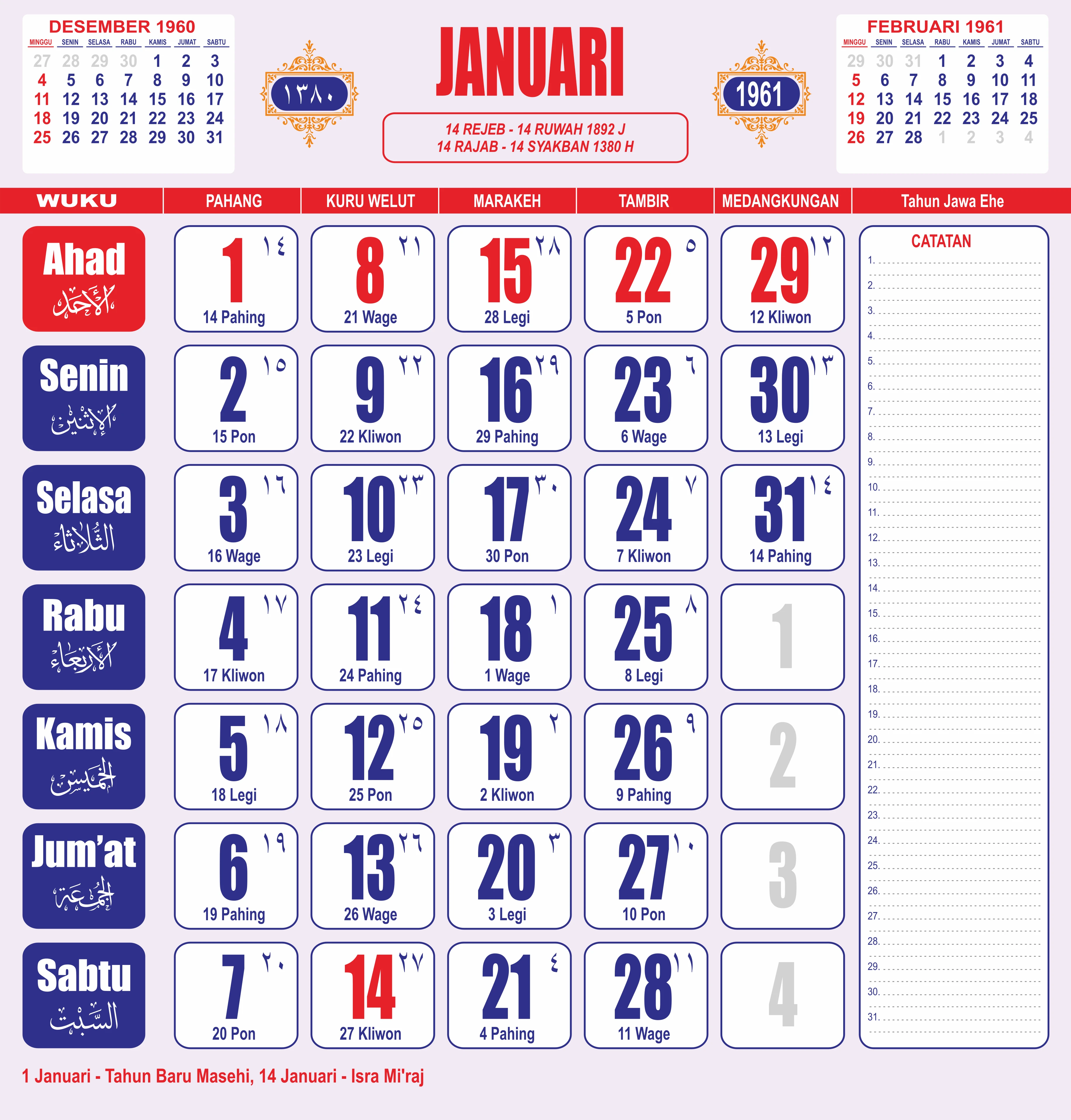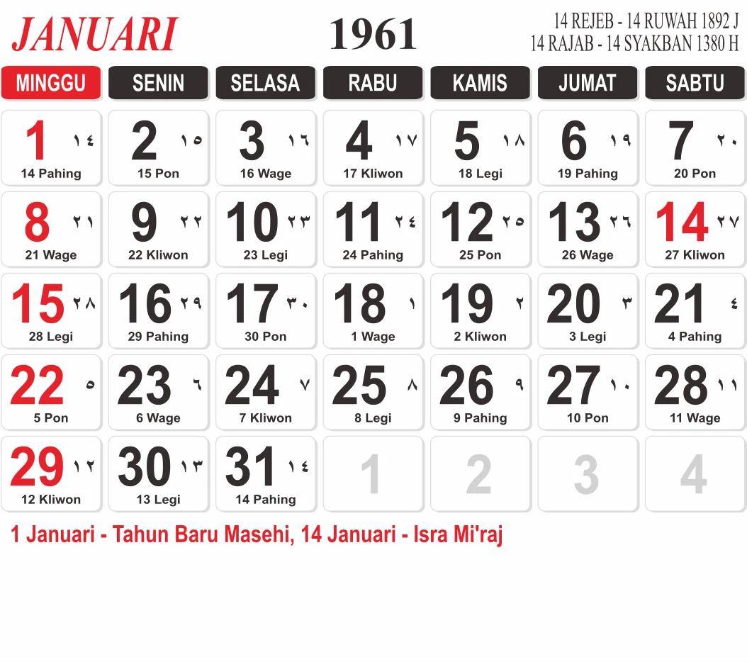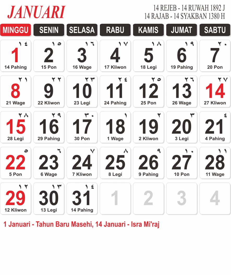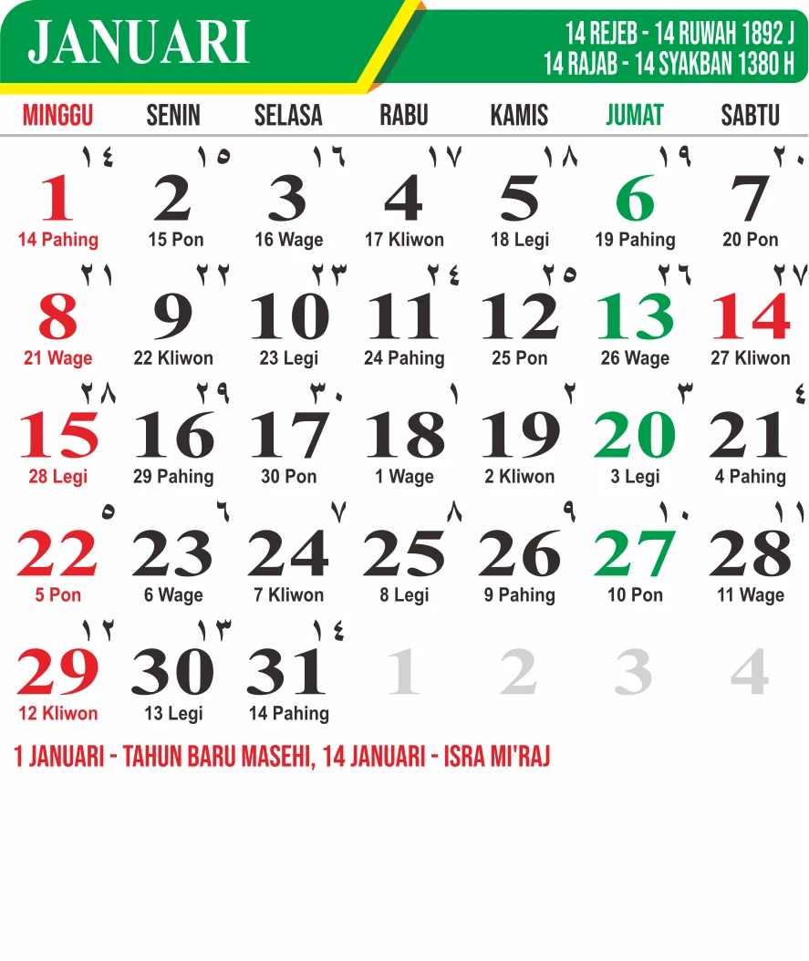 Template Kalender Jawa + Hijriah Vector