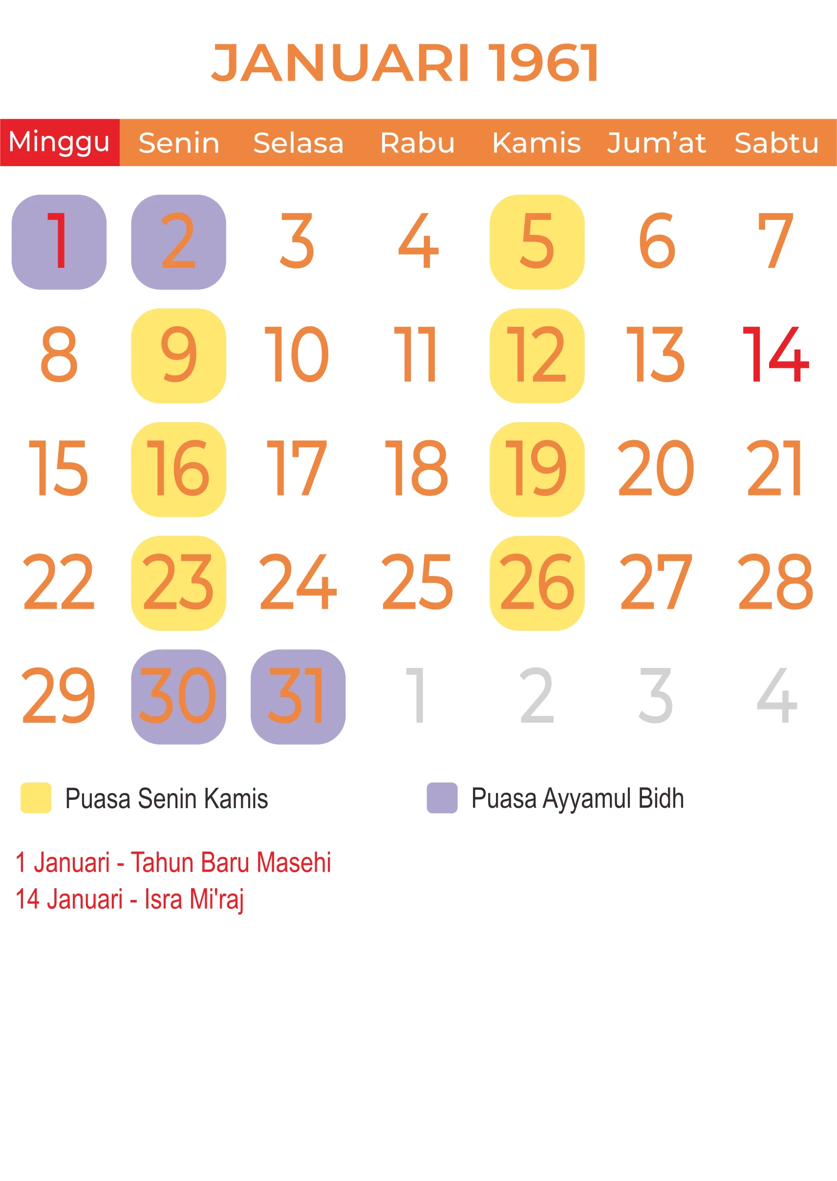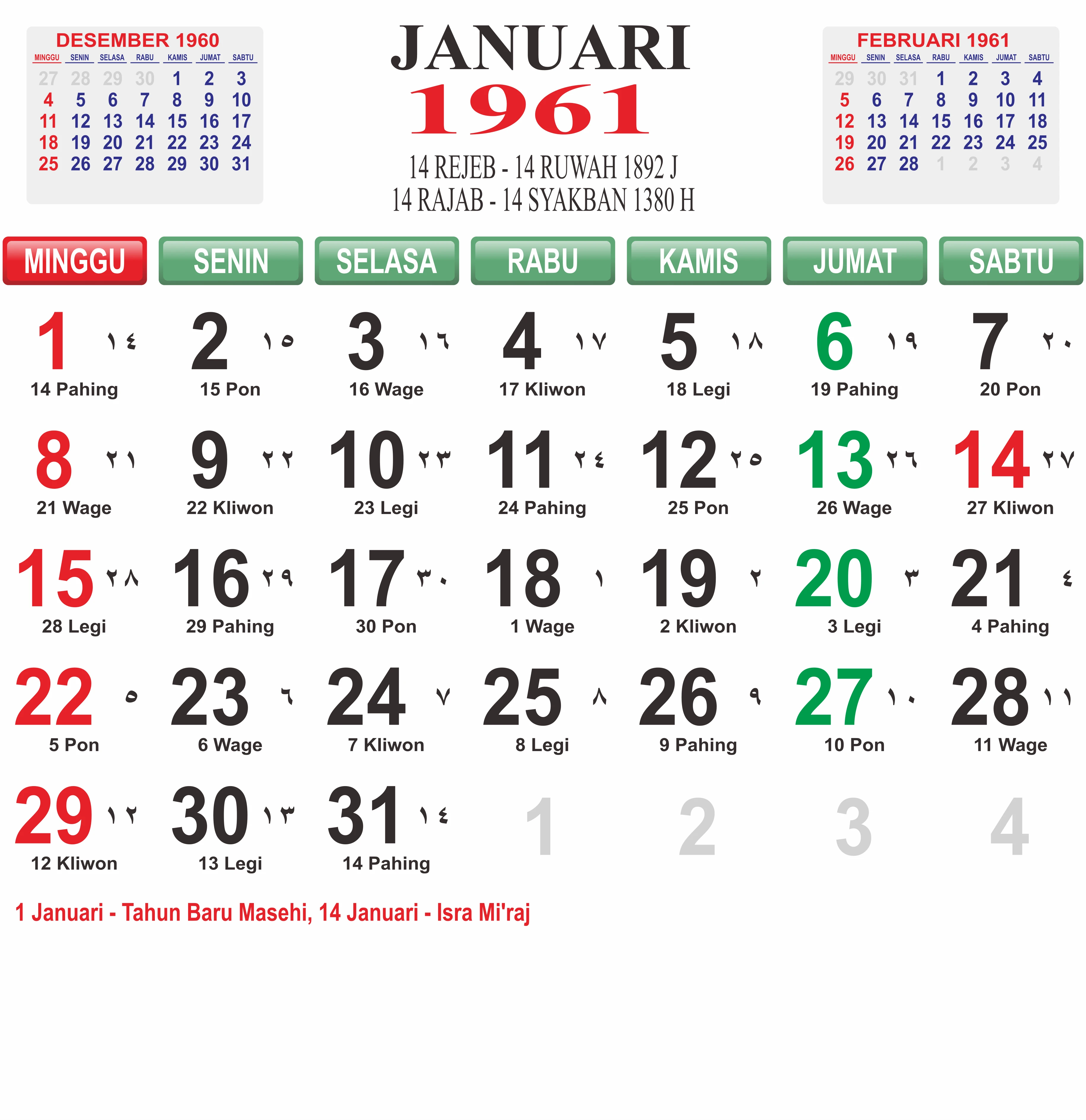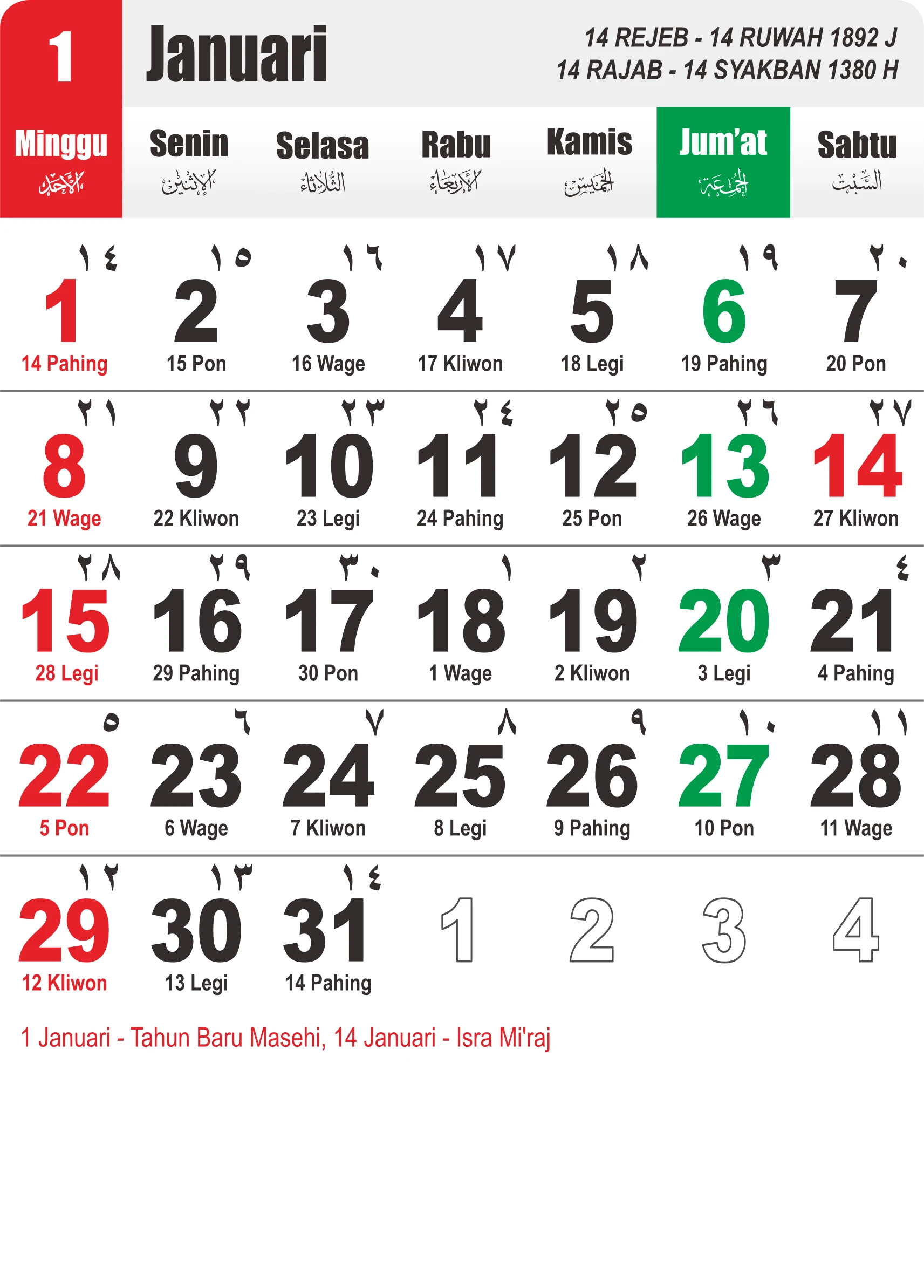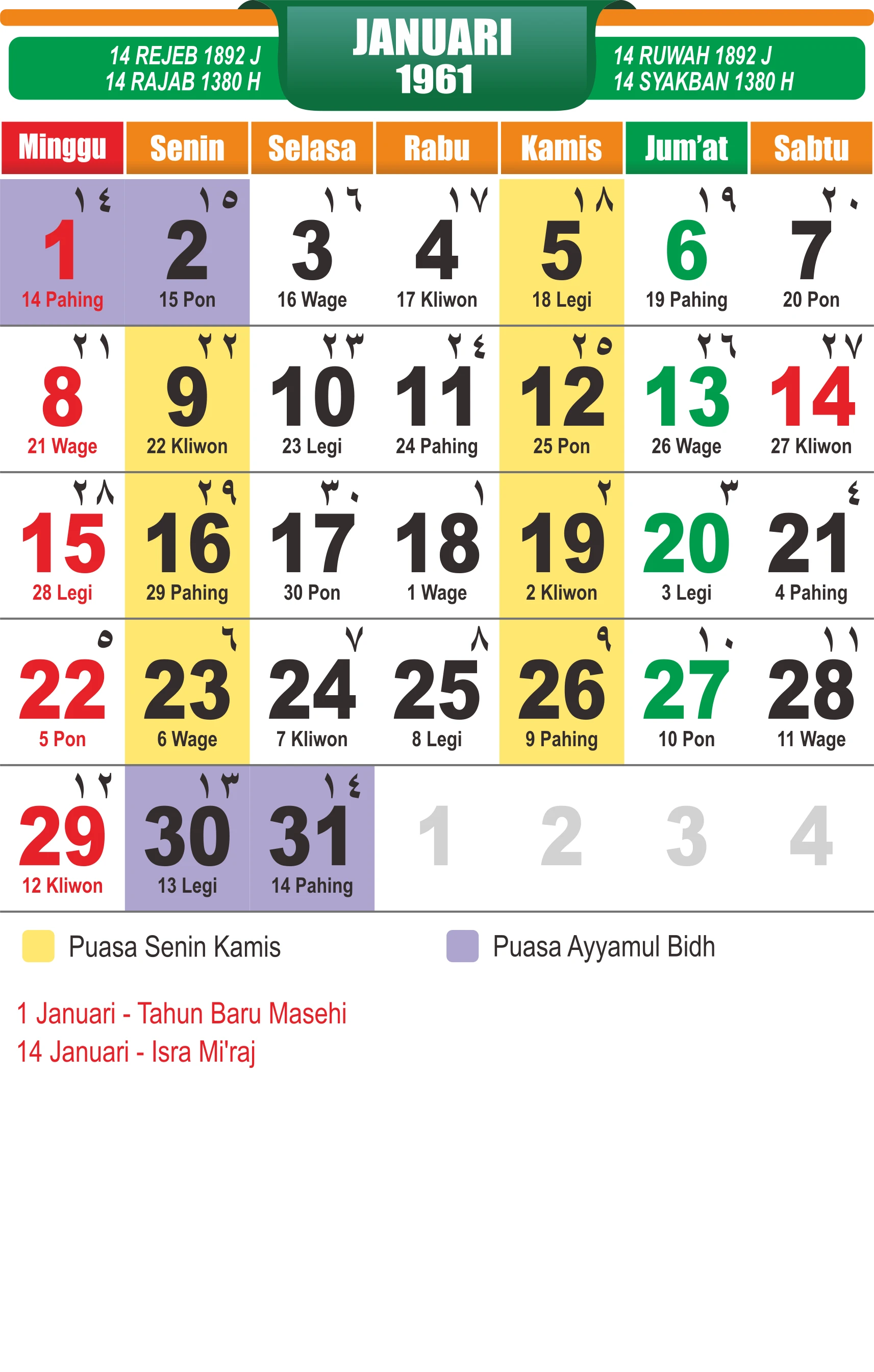 Template Kalender Jawa + Hijriah Vector