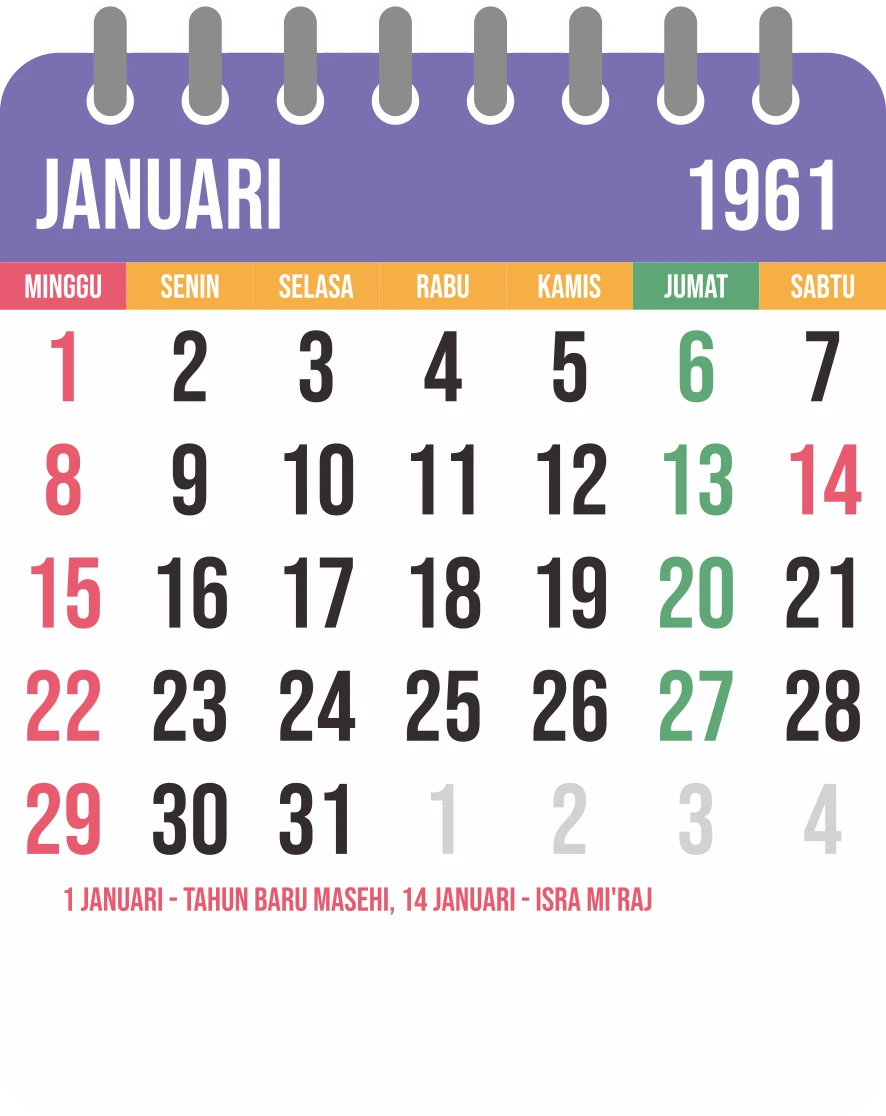Dapatkan akses vector template kalender 1961 dengan berbagai tema, file editable, warna CMYK / RGB untuk CorelDRAW.