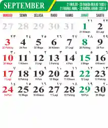 Tema kalender 1961 yang nuansa Islami yang cocok buat pondok pesantren atau lembaga keagamaan. Menggunakan font standar Times New Roman yang mudah dibaca.