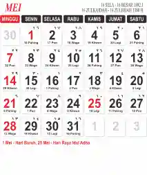 Template Kalender Masehi Vector