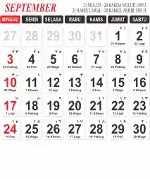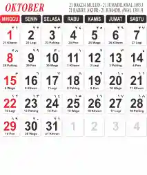 Template Kalender Jawa + Hijriah Vector