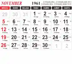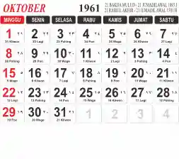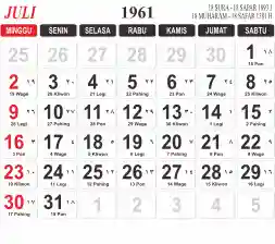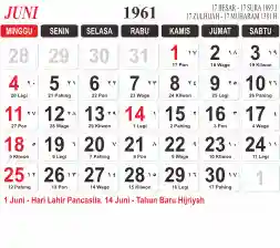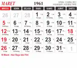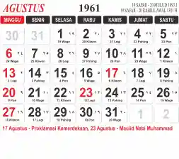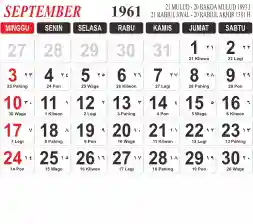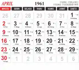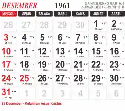Tema kalender 1961 yang cocok buat desain kalender yang lebih lebar, cocok buat kalender kantor atau desain yang lebih minimalis.