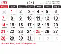 List hari libur tahun 1961 pada Tema 3 (Wide)