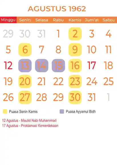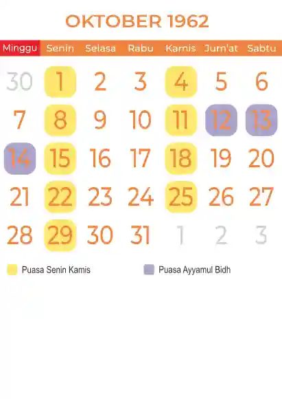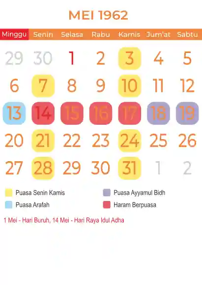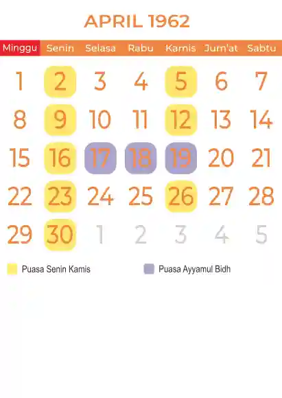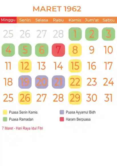 Template kalender puasa 1962, Versi yang lebih simple, cocok sekali buat anda yang ingin cetak kalender yang bermanfat buat umat.