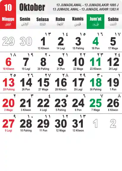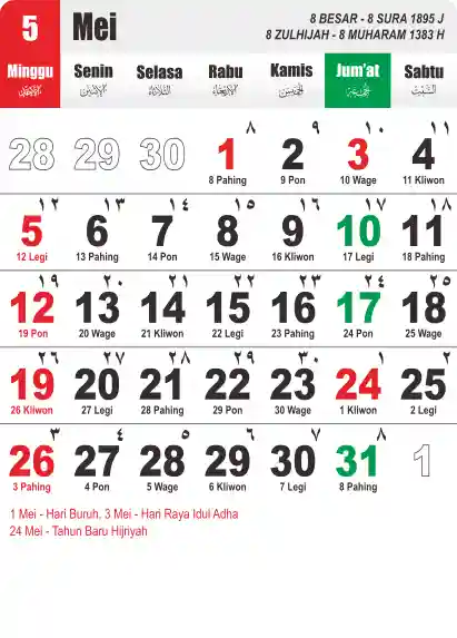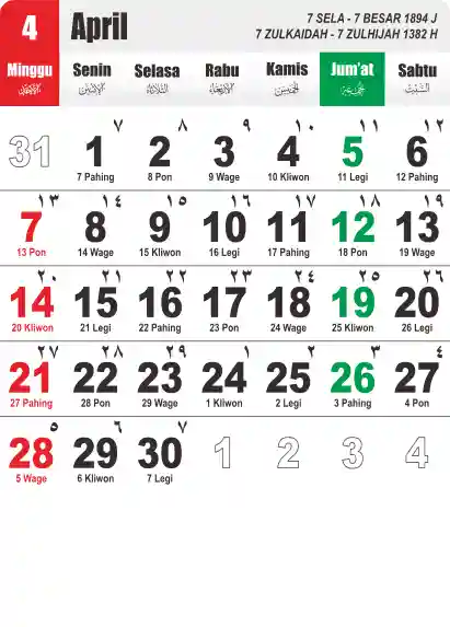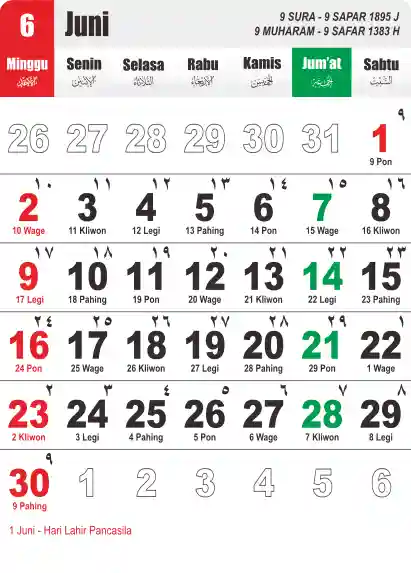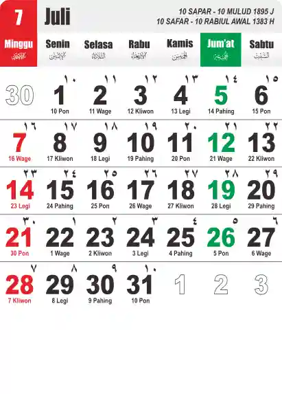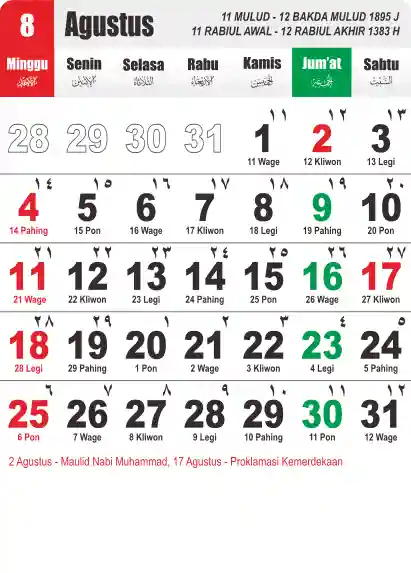 Template Kalender Jawa + Hijriah Vector