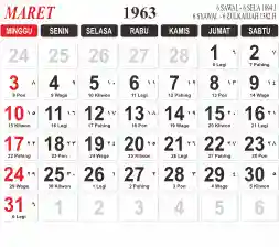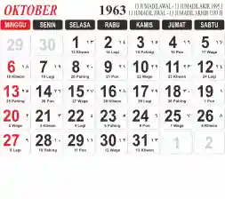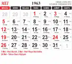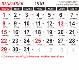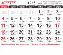List hari libur tahun 1963 pada Tema 3 (Wide)