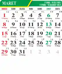 Template Kalender Jawa + Hijriah Vector