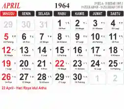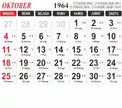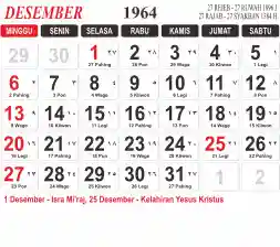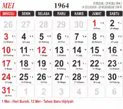 List hari libur tahun 1964 pada Tema 3 (Wide)