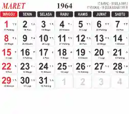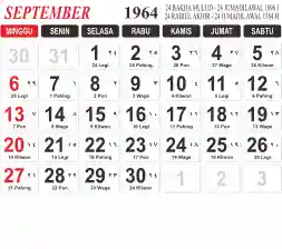 Tema kalender 1964 yang cocok buat desain kalender yang lebih lebar, cocok buat kalender kantor atau desain yang lebih minimalis.