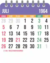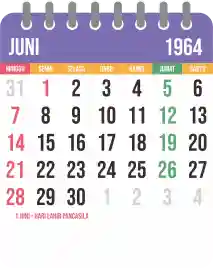 Template kalender 1964 yang bertemakan lucu dan moderen. Bentuknya simple tanpa tanggal hijriah dan tanggal jawa. Cocok buat kebutuhan kalender yang sifatnya universal.