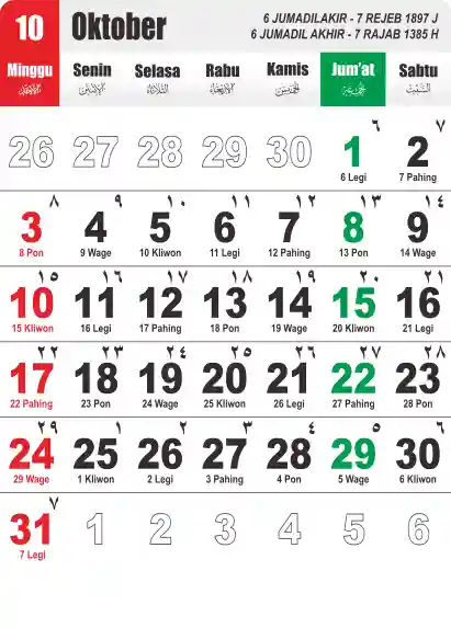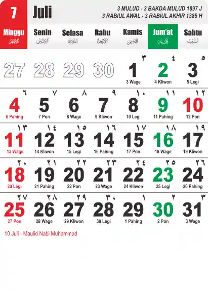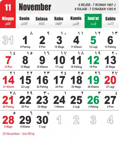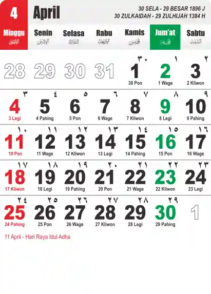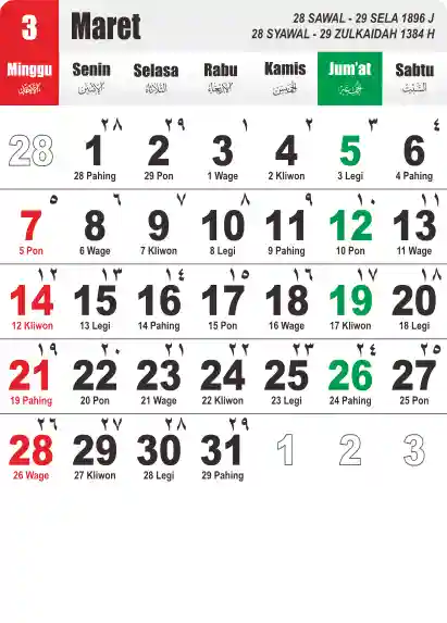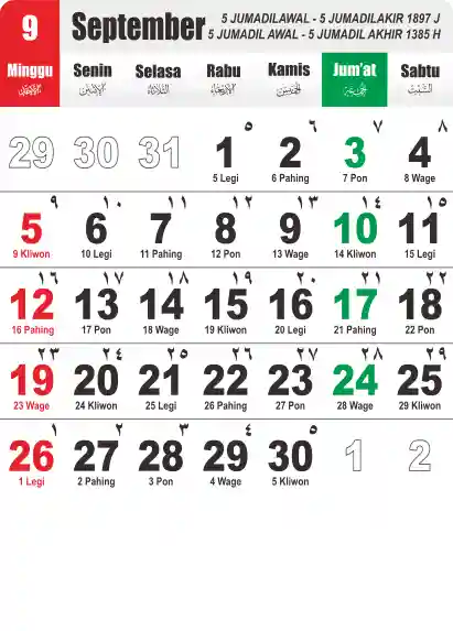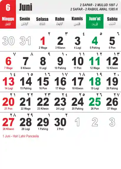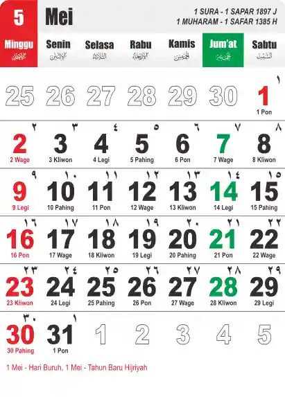 Template Kalender Jawa + Hijriah Vector