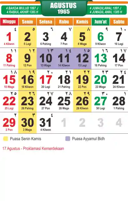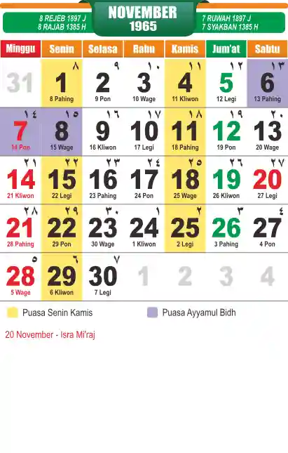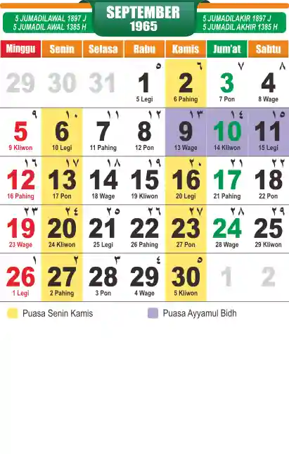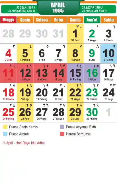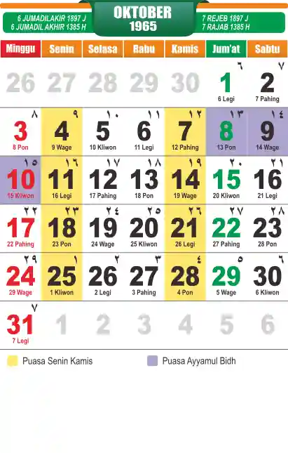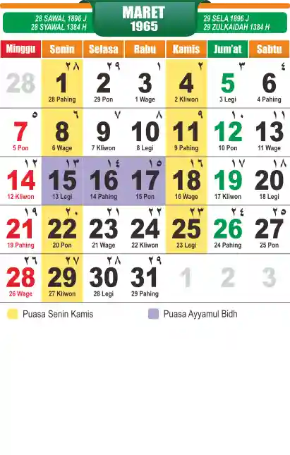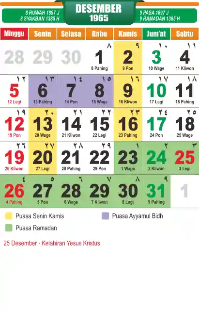 Template kalender puasa 1965, cocok sekali buat anda yang ingin cetak kalender yang bermanfat buat umat.