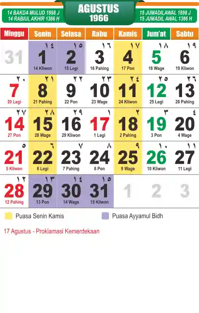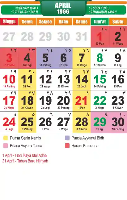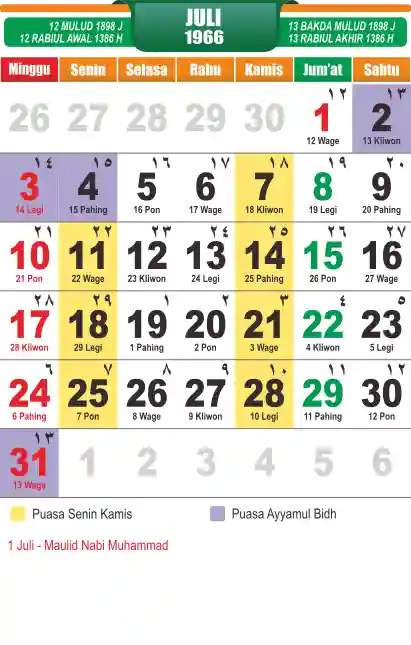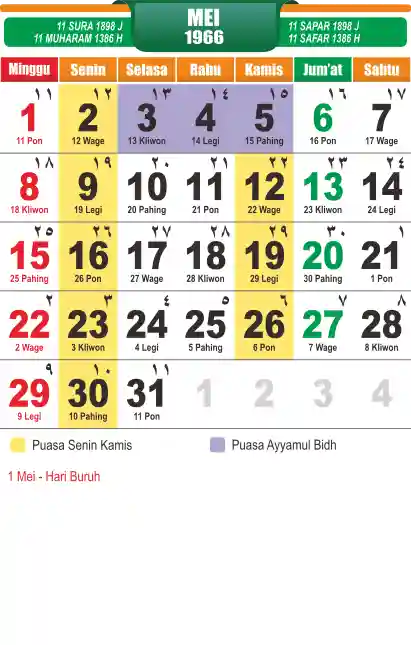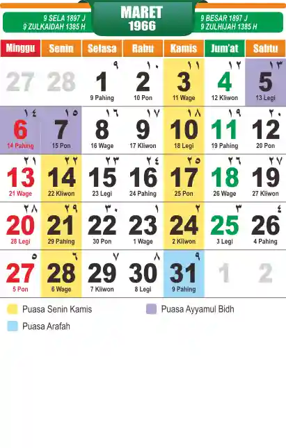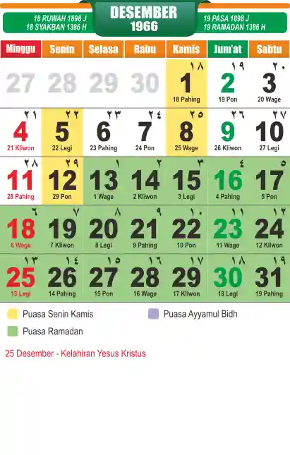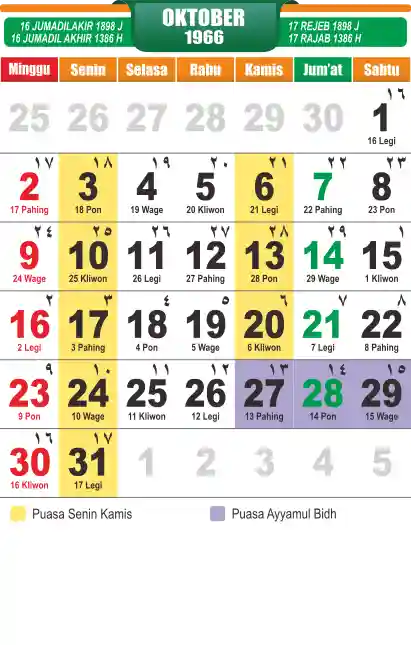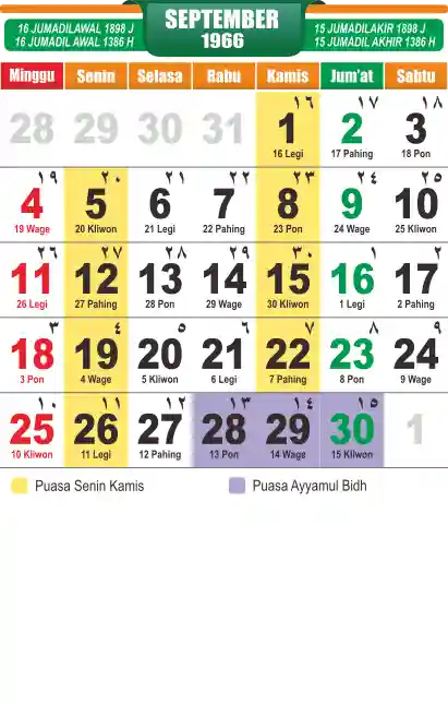 Template kalender puasa 1966, cocok sekali buat anda yang ingin cetak kalender yang bermanfat buat umat.