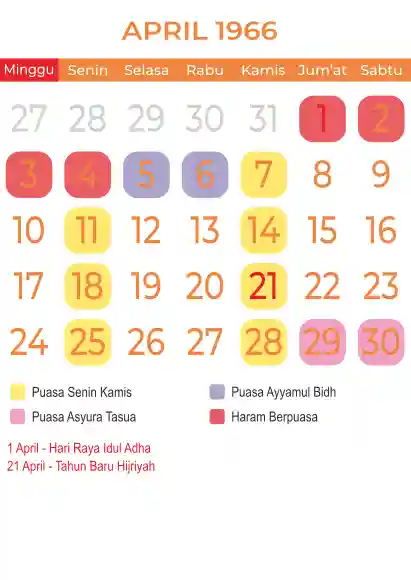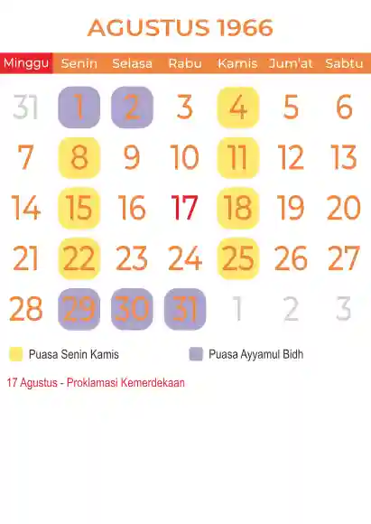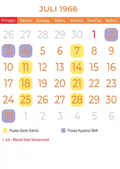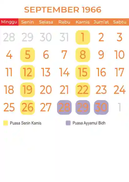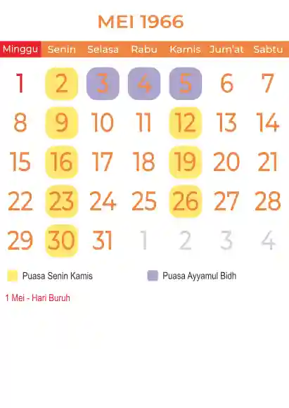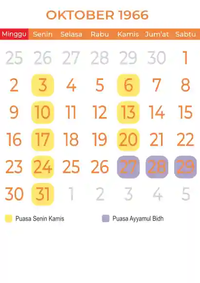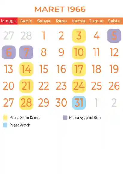 Template kalender puasa 1966, Versi yang lebih simple, cocok sekali buat anda yang ingin cetak kalender yang bermanfat buat umat.