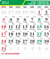 Template Kalender Jawa + Hijriah Vector