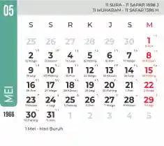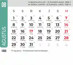 Template kalender 1966 dengan konsep minimalis modern dengan warna yang soft, cocok sekali buat kantor / bisnis seperti bank.